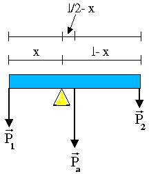 Il sostegno dell'asta deve essere posto a una distanza (che indichiamo con x) dal peso 1 tale che la risultante dei momenti delle tre forze applicate sia nulla: